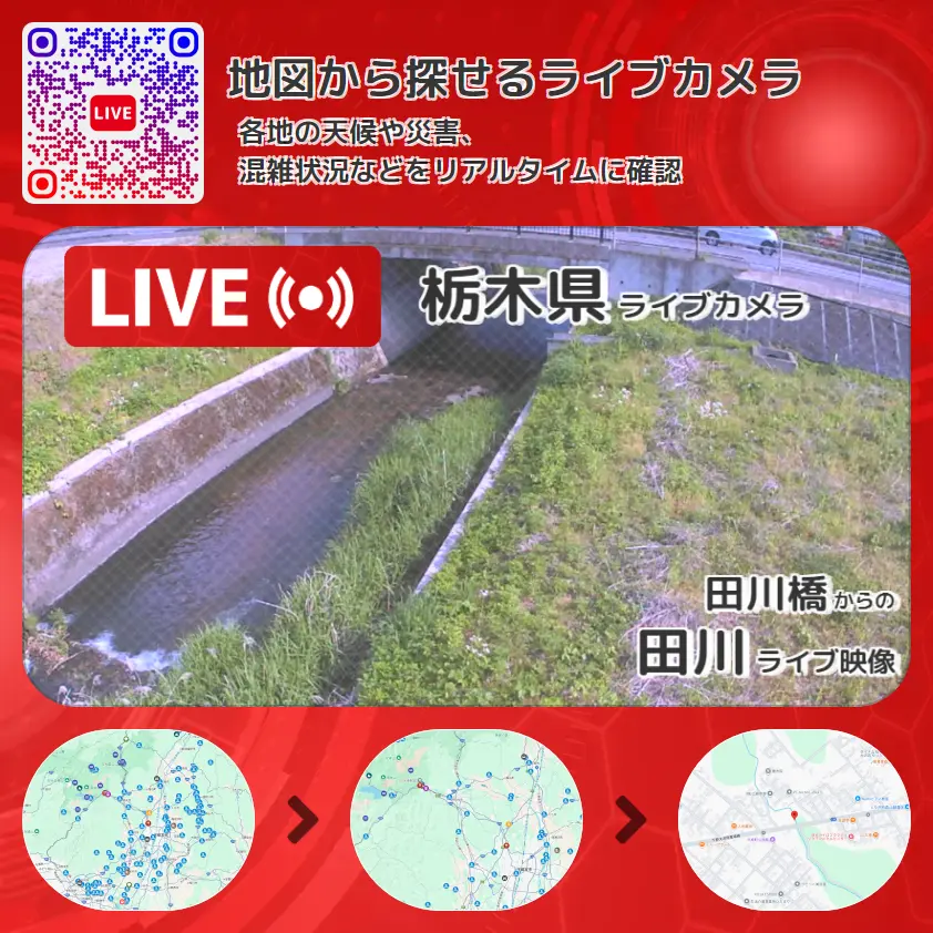 田川の他に、田川橋や周辺の気象状況も併せてチェックすることが可能で、台風・大雨・地震などの災害による被害状況も把握することができます。
