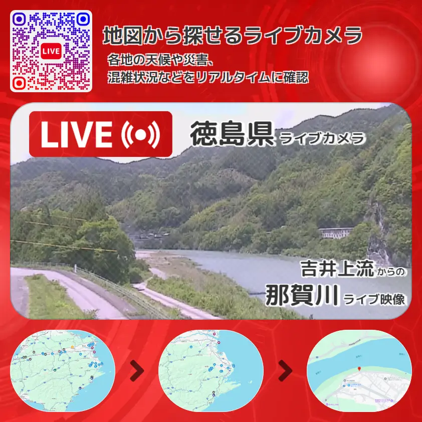 徳島県 「那賀川」ライブ映像(吉井上流 設置カメラ) ライブカメラ 監視カメラ