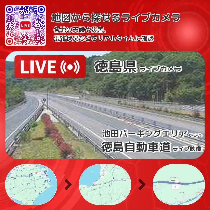 池田パーキングエリア(池田PA)付近から、徳島自動車道(徳島道)が確認できるライブカメラです。