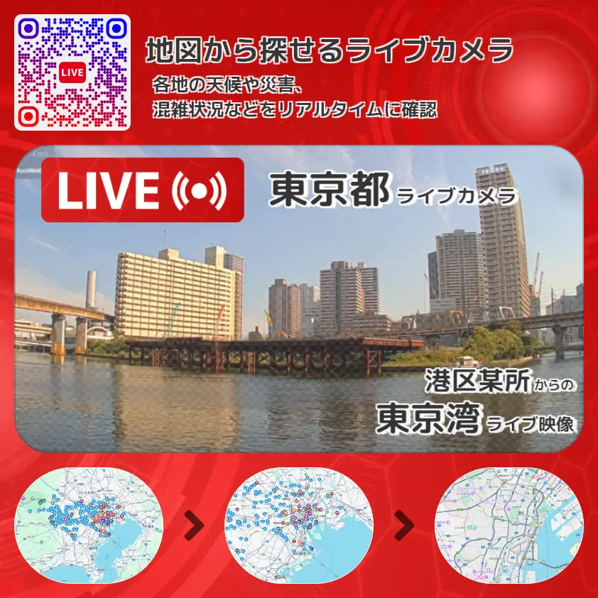 最新の状況は上の画像をクリックして確認することができます。更新間隔は配信元によって異なるため、リアルタイムではない場合があります。