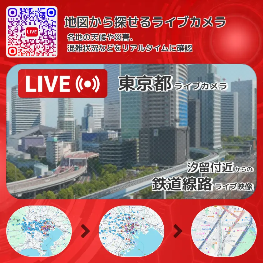 鉄道線路(ゆりかもめ東京臨海新交通臨海線・東海道新幹線・JR山手線・JR京浜東北線)の他に、首都高速道路(首都高速中央環状線・中環・中央環状)や周辺の気象状況も併せてチェックすることが可能で、台風・大雨・地震などの災害による被害状況も把握することができます。