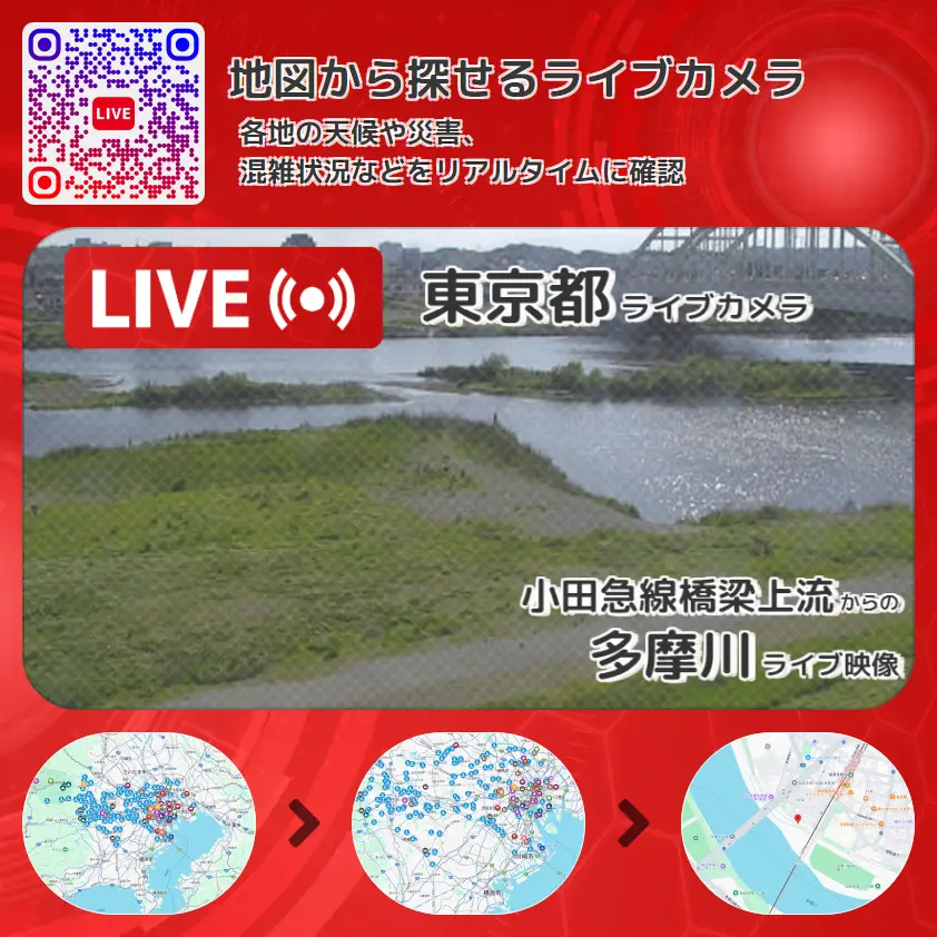 小田急線橋梁上流から、多摩川が確認できるライブカメラです。