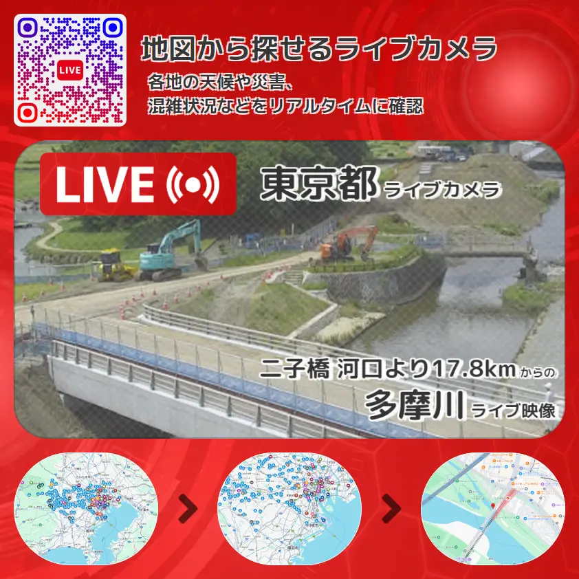 多摩川の他に、野川や周辺の気象状況も併せてチェックすることが可能で、台風・大雨・地震などの災害による被害状況も把握することができます。