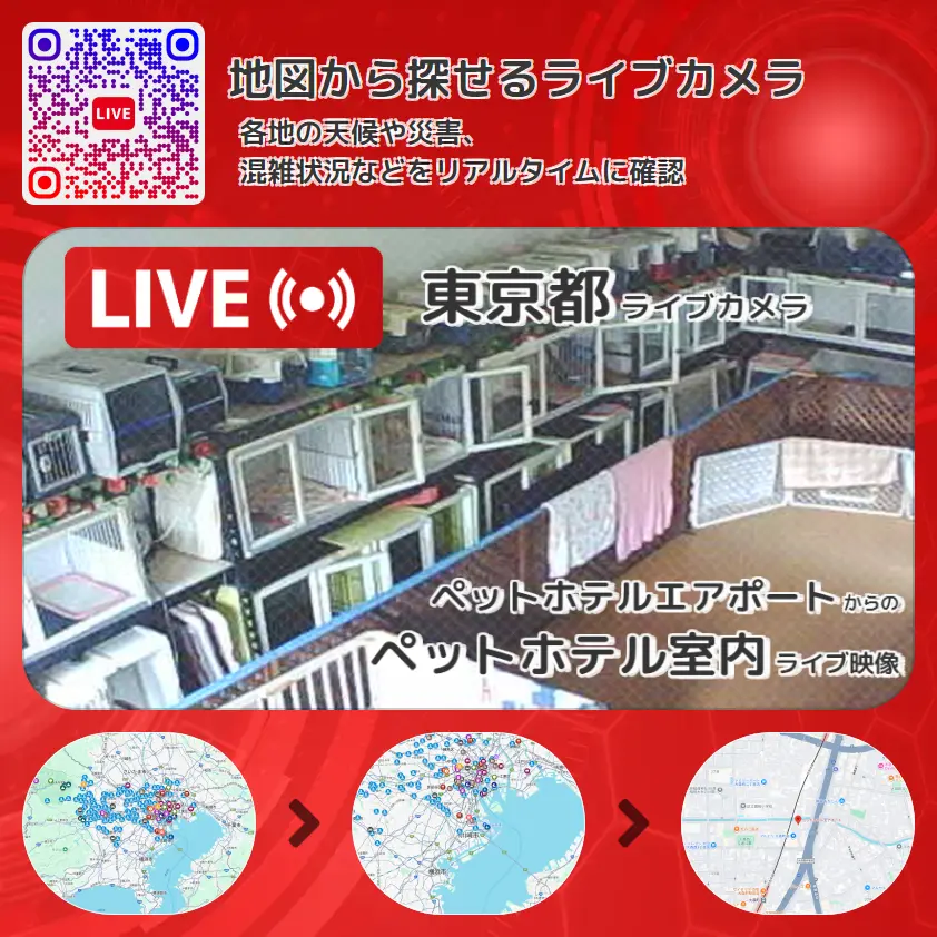 ペットホテルエアポートから、ペットホテル室内が確認できるライブカメラです。