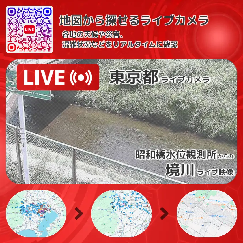 昭和橋水位観測所(昭和橋上流11m)から、境川が確認できるライブカメラです。
