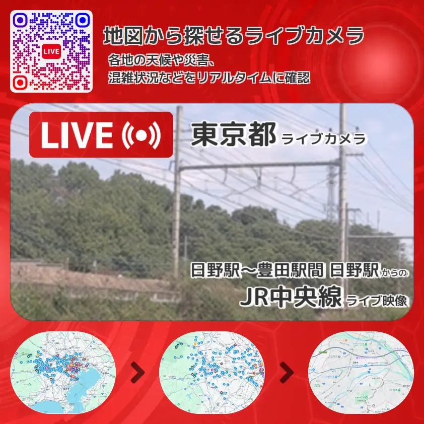 日野駅~豊田駅間 日野駅(東京都日野市大坂上1丁目) 豊田駅(東京都日野市豊田4丁目)から、JR中央線(JR中央本線)が確認できるライブカメラです。