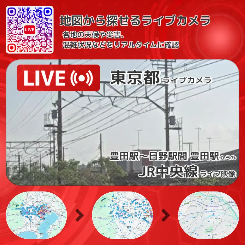 豊田駅~日野駅間 豊田駅(東京都日野市豊田4丁目) 日野駅(東京都日野市大坂上1丁目)から、JR中央線(JR中央本線)が確認できるライブカメラです。