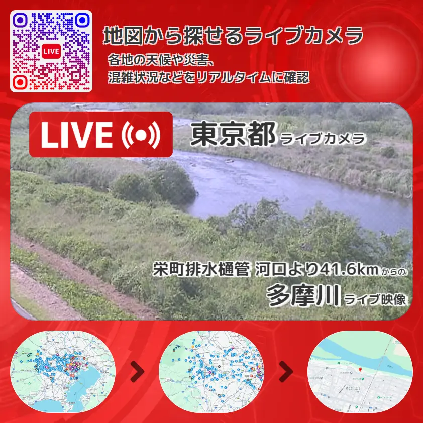 栄町排水樋管 河口より41.6kmから、多摩川が確認できるライブカメラです。
