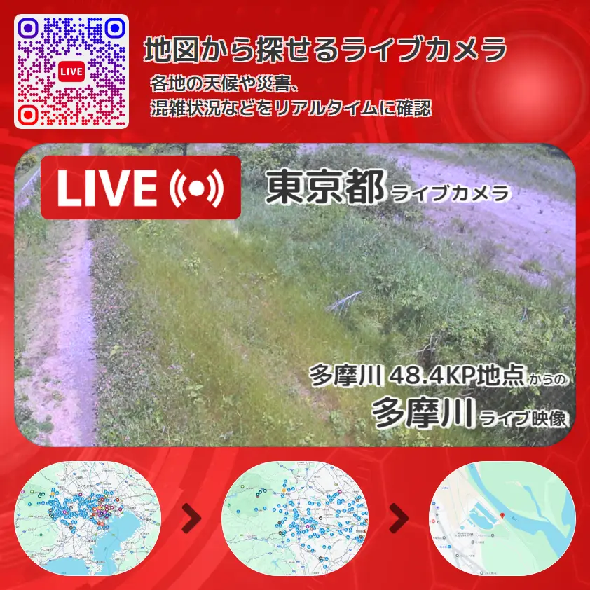 多摩川 48.4KP地点から、多摩川が確認できるライブカメラです。