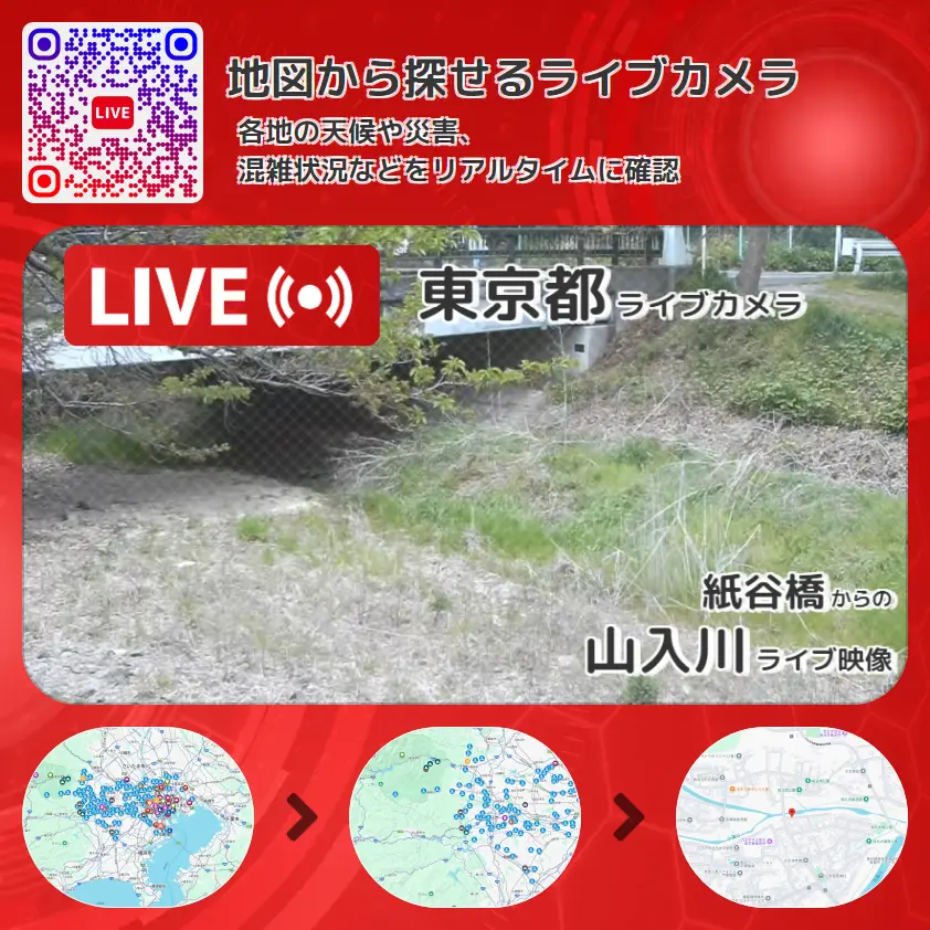 東京都 「山入川」ライブ映像(紙谷橋 設置カメラ) ライブカメラ 監視カメラ