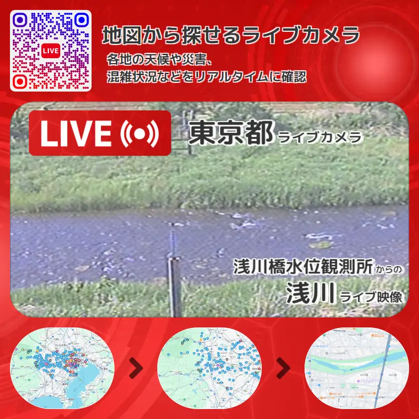 周辺の気象状況も併せてチェックすることが可能で、台風・大雨・地震などの災害による被害状況も把握することができます。