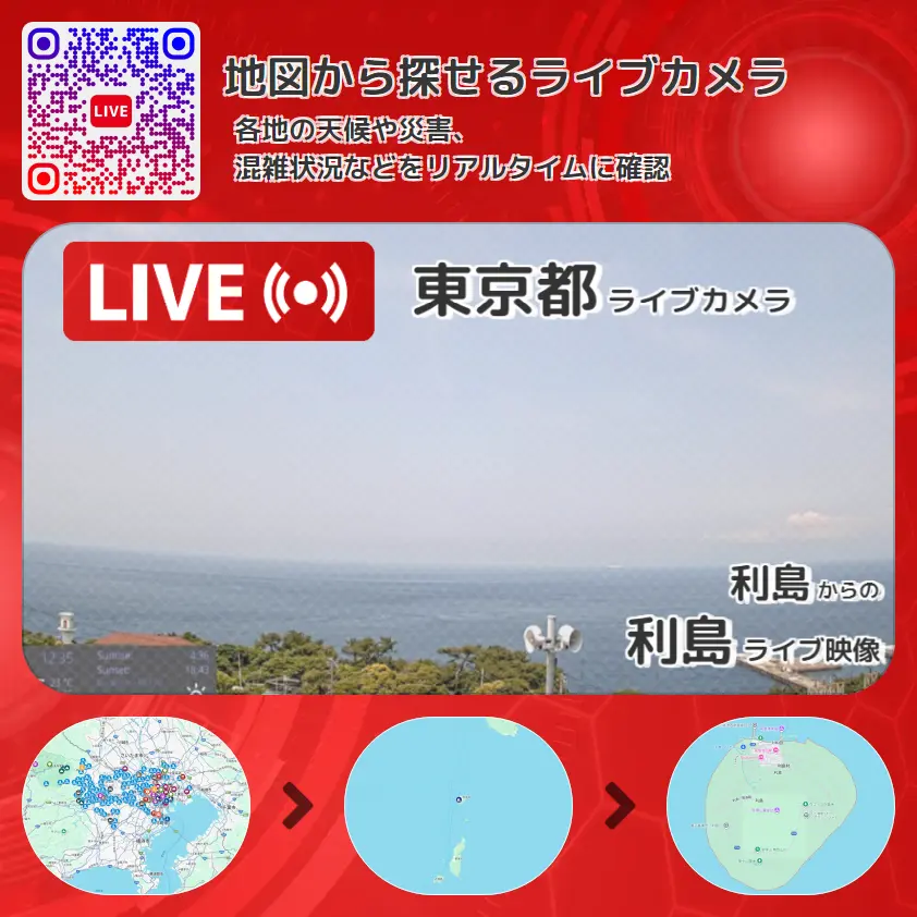 利島の他に、椿や周辺の気象状況も併せてチェックすることが可能で、台風・大雨・地震などの災害による被害状況も把握することができます。