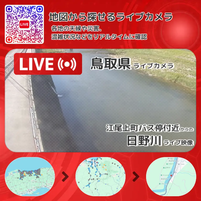 江尾上町バス停付近から、日野川が確認できるライブカメラです。