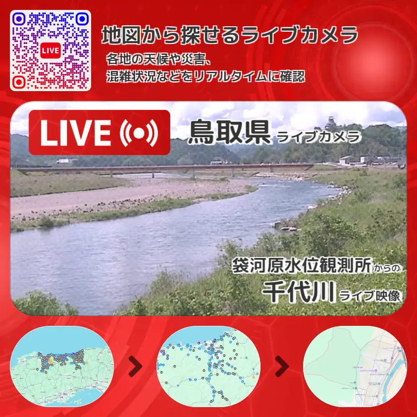 鳥取県 「千代川」ライブ映像(袋河原水位観測所 設置カメラ) ライブカメラ 監視カメラ