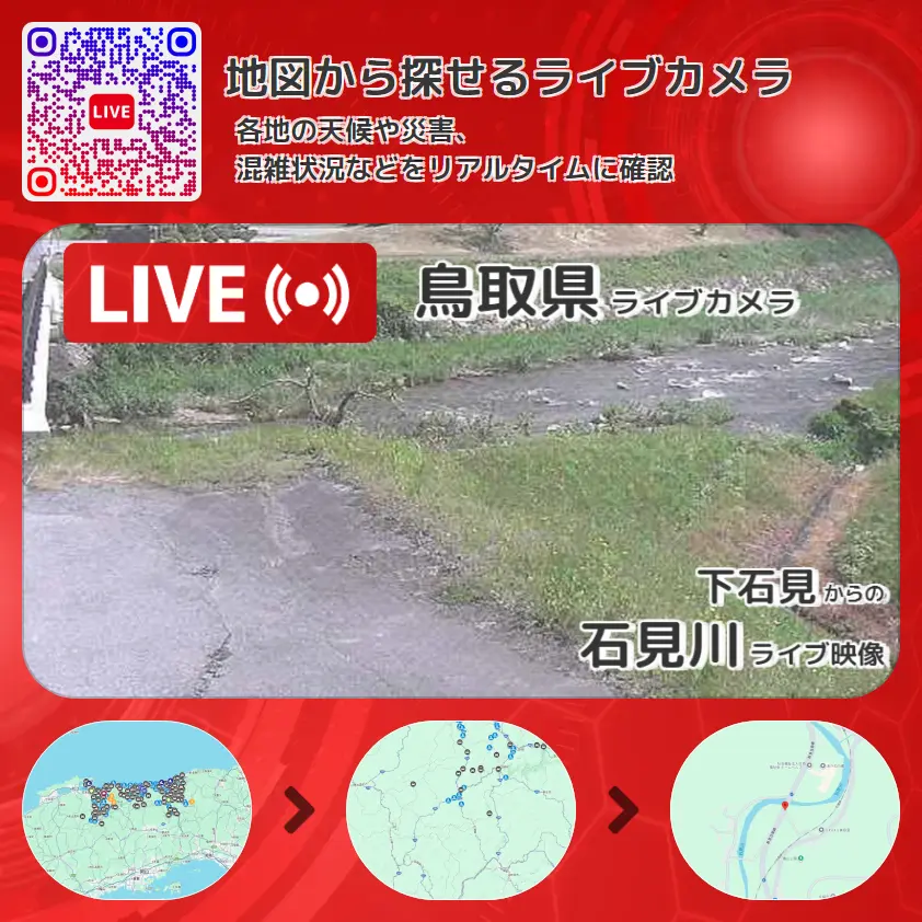 鳥取県 「石見川」ライブ映像(下石見 設置カメラ) ライブカメラ 監視カメラ