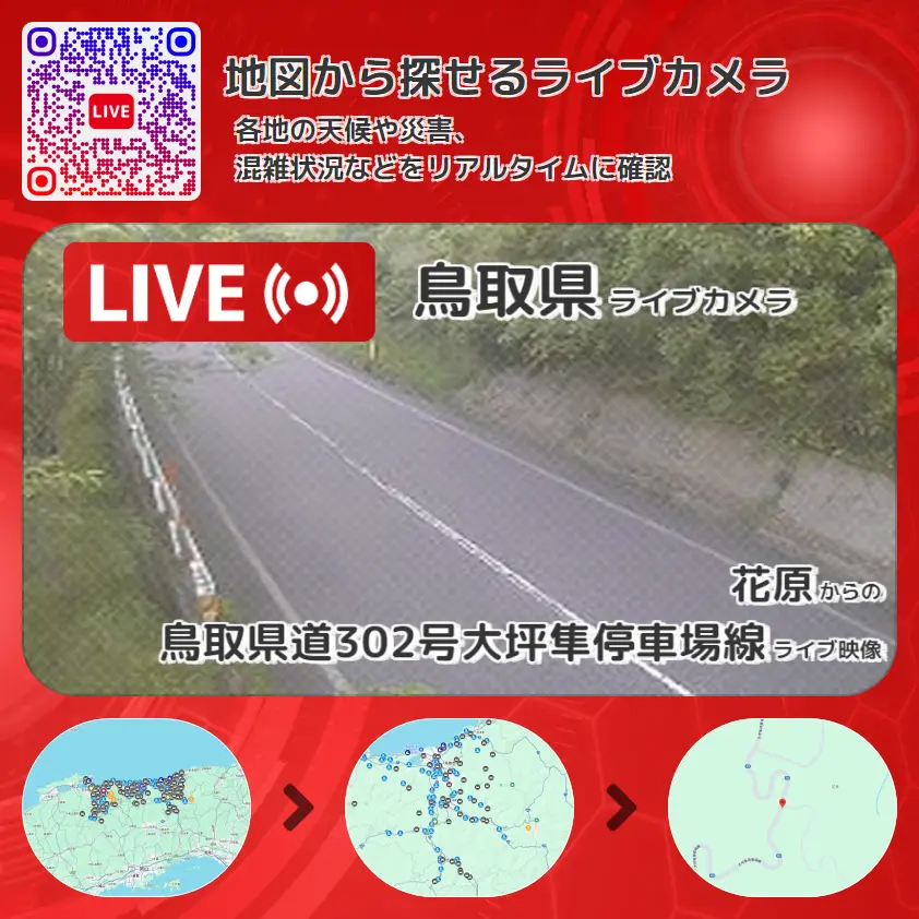 花原から、鳥取県道302号大坪隼停車場線が確認できるライブカメラです。