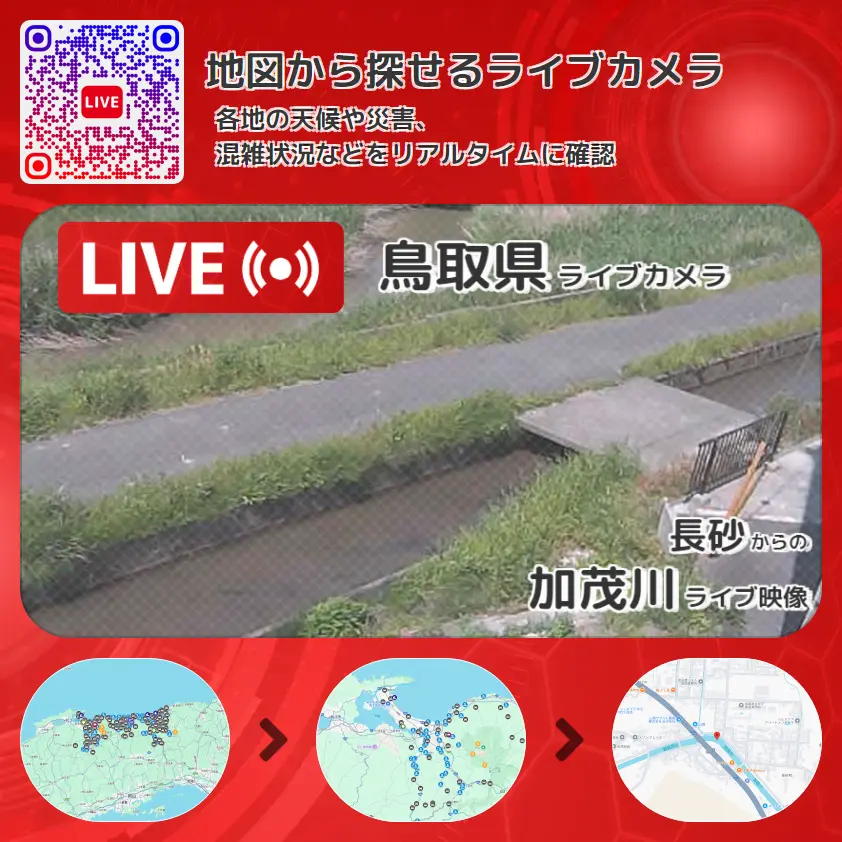 鳥取県 「加茂川」ライブ映像(長砂 設置カメラ) ライブカメラ 監視カメラ