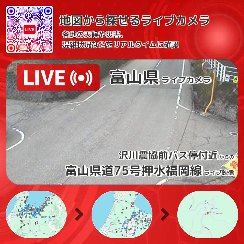 富山県 「富山県道75号押水福岡線」ライブ映像(沢川農協前バス停付近 設置カメラ) ライブカメラ 監視カメラ