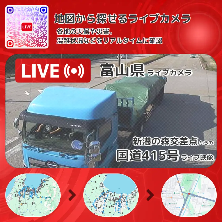 富山県 「国道415号」ライブ映像(新港の森交差点 設置カメラ) ライブカメラ 監視カメラ