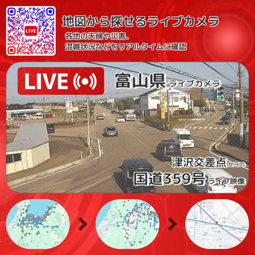 富山県 「国道359号」ライブ映像(津沢交差点 設置カメラ) ライブカメラ 監視カメラ