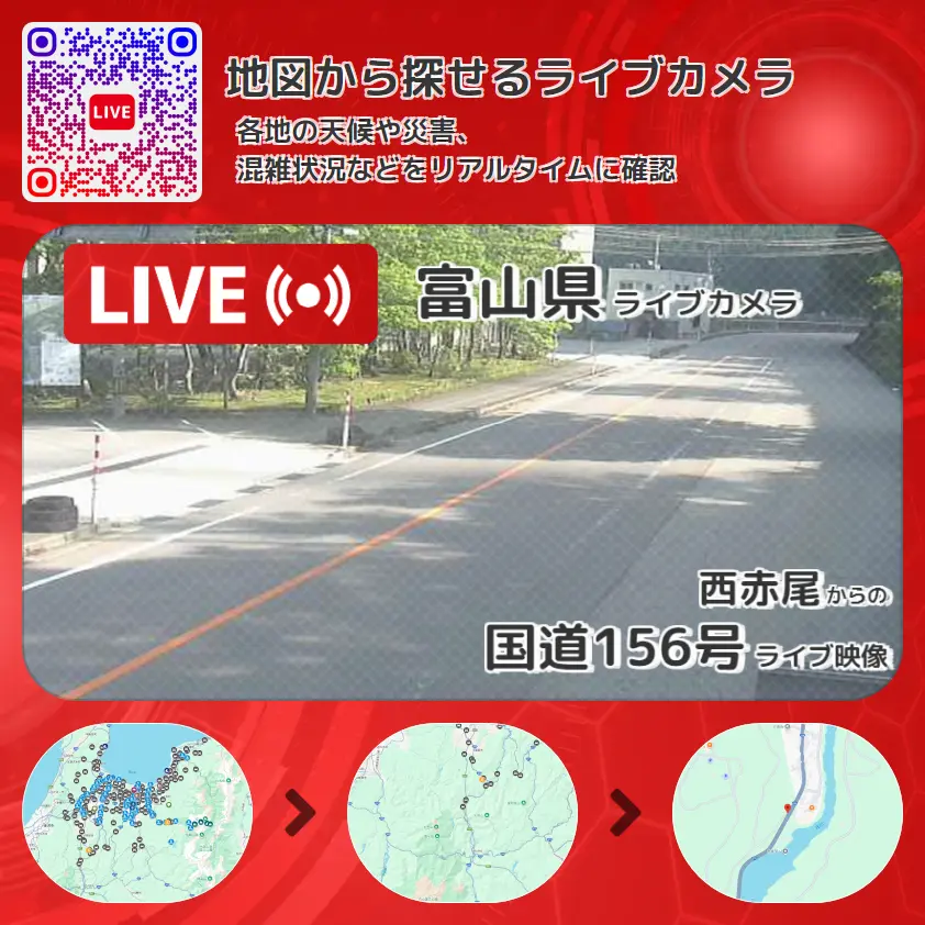 富山県 「国道156号」ライブ映像(西赤尾 設置カメラ) ライブカメラ 監視カメラ