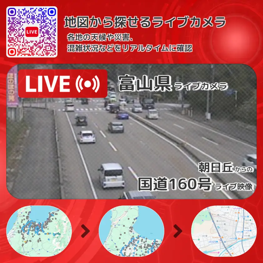国道160号(氷見バイパス)の他に、氷見トンネルや周辺の気象状況も併せてチェックすることが可能で、台風・大雨・地震などの災害による被害状況も把握することができます。
