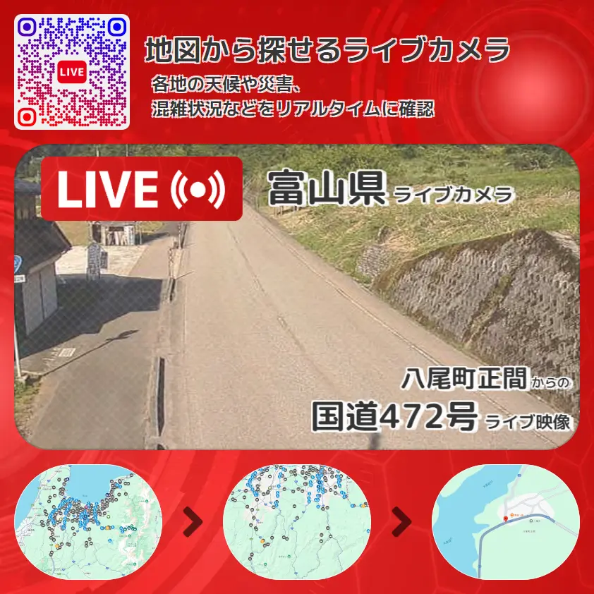 八尾町正間から、国道472号が確認できるライブカメラです。
