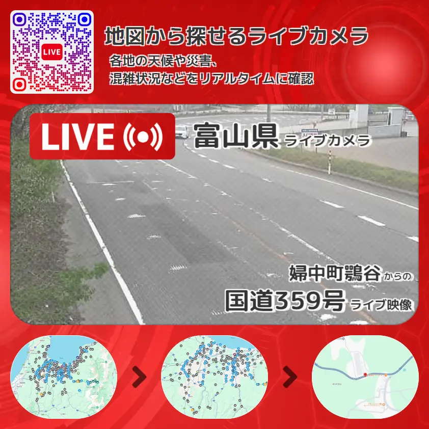 富山県 「国道359号」ライブ映像(婦中町鶚谷 設置カメラ) ライブカメラ 監視カメラ