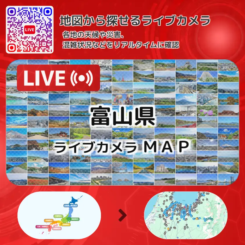 富山県のライブカメラMAP 富山県 X Facebook はてブ LINE コピー 2025.11.082025.11.09 リンク GoogleMapの地点一覧は測地系の影響により、地図上のマークが示す地点はおおよその場所になります。正確な位置は各地点の詳細ページをご確認ください。リンク