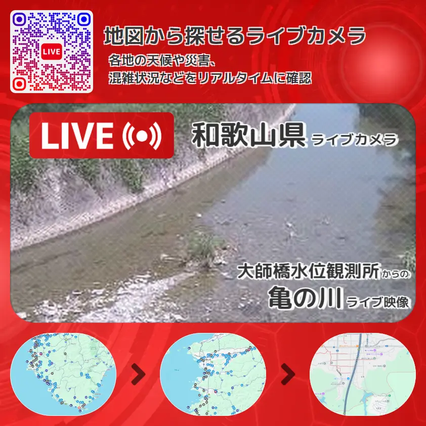 和歌山県 「亀の川」ライブ映像(大師橋水位観測所 設置カメラ) ライブカメラ 監視カメラ