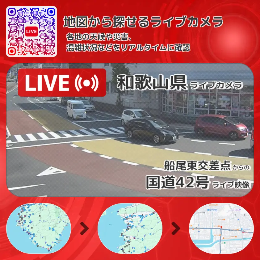 船尾東交差点から、国道42号が確認できるライブカメラです。