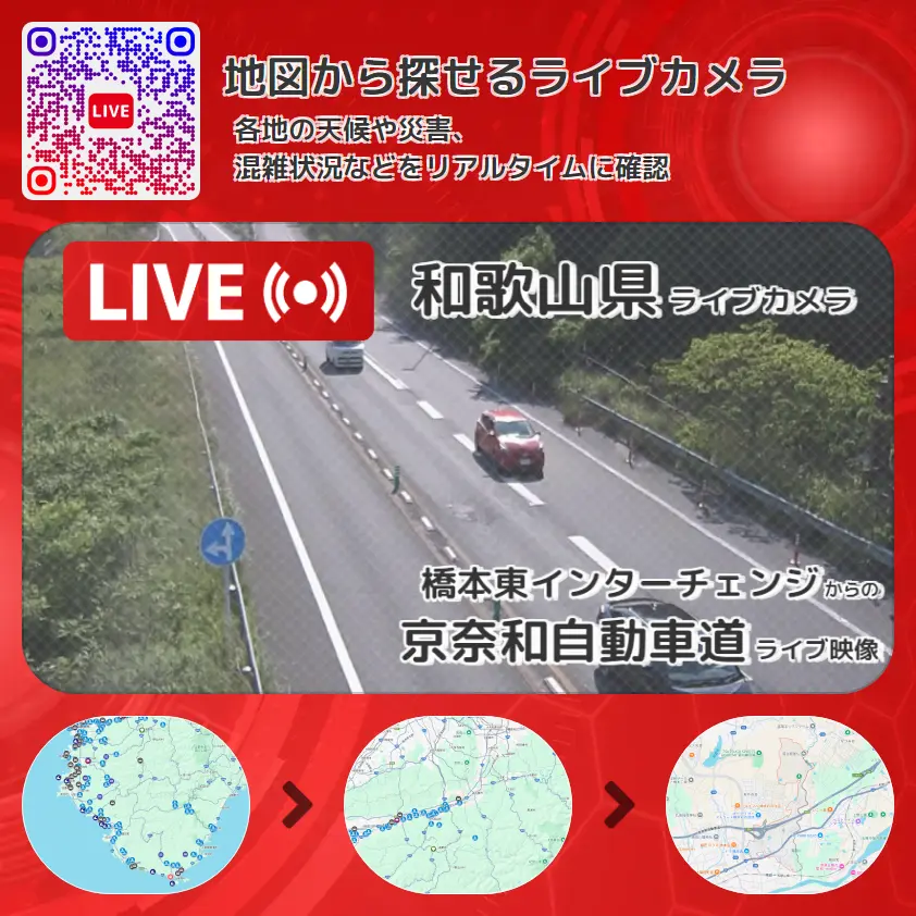 橋本東インターチェンジ(橋本東IC)合流部上りから、京奈和自動車道(京奈和道・国道24号)が確認できるライブカメラです。