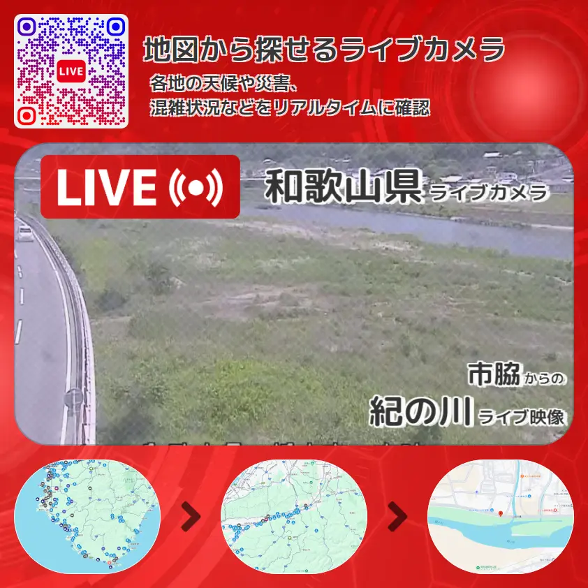 紀の川(紀ノ川)の他に、山田川河口付近や周辺の気象状況も併せてチェックすることが可能で、台風・大雨・地震などの災害による被害状況も把握することができます。