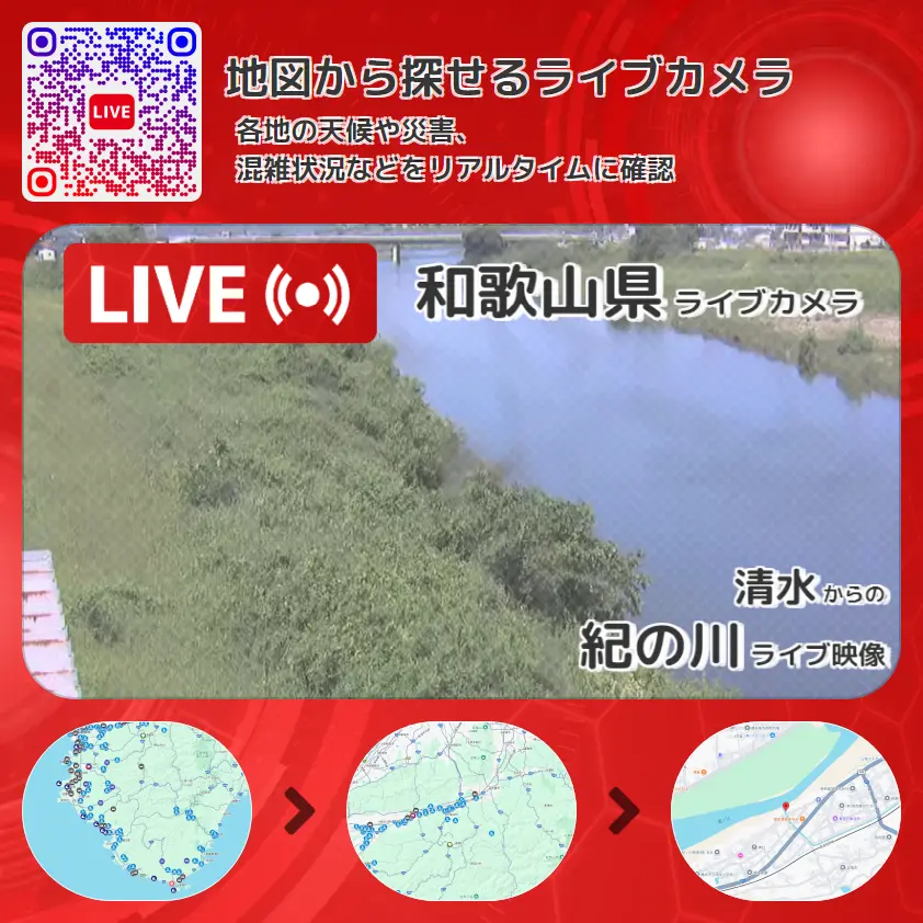 清水から、紀の川(紀ノ川)が確認できるライブカメラです。