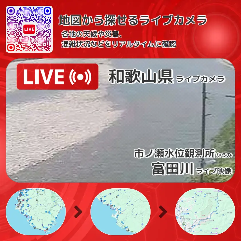 和歌山県 「富田川」ライブ映像(市ノ瀬水位観測所 設置カメラ) ライブカメラ 監視カメラ