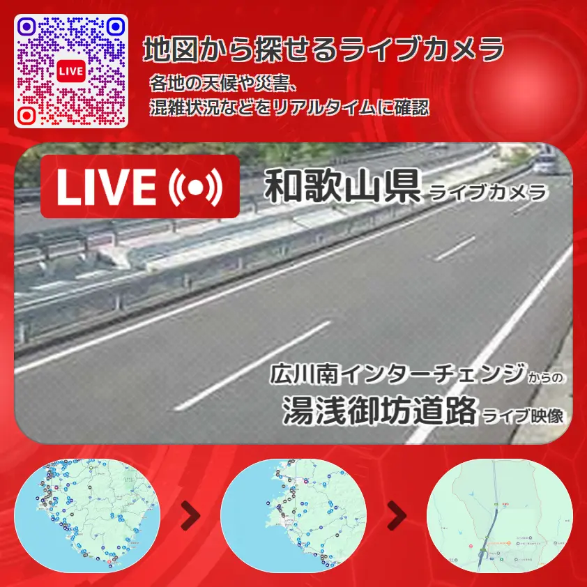 広川南インターチェンジ(広川南IC)~川辺インターチェンジ(川辺IC)から、湯浅御坊道路が確認できるライブカメラです。