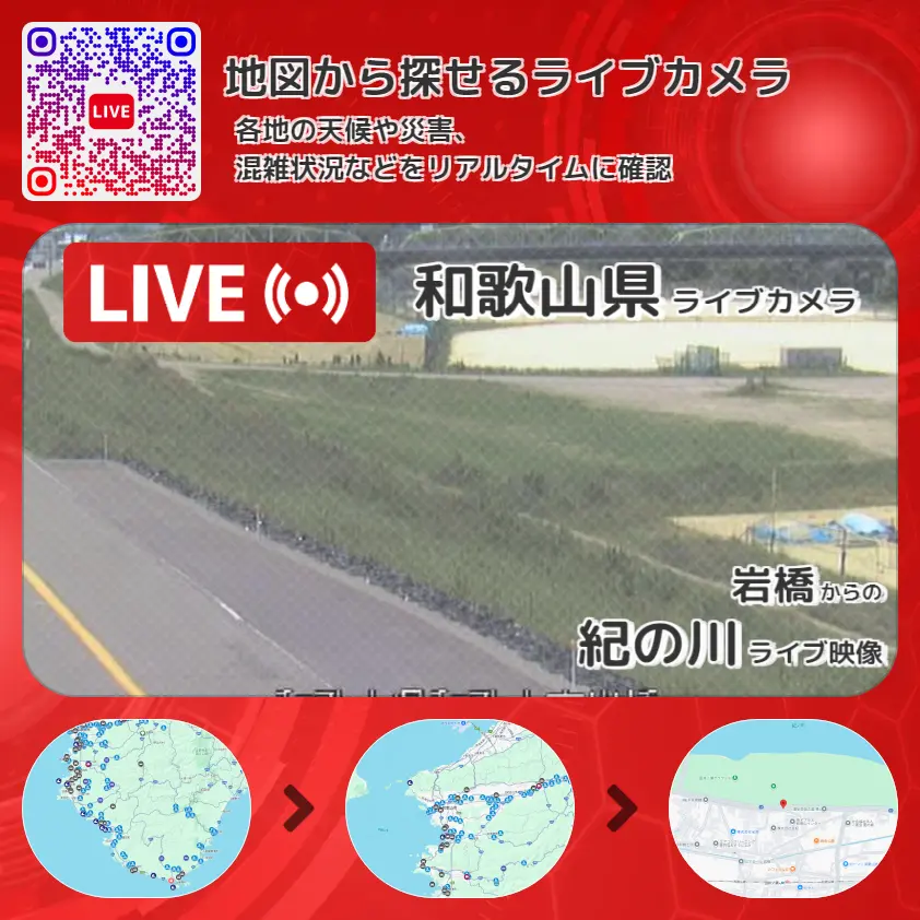 岩橋(岩瀬)から、紀の川(紀ノ川)が確認できるライブカメラです。