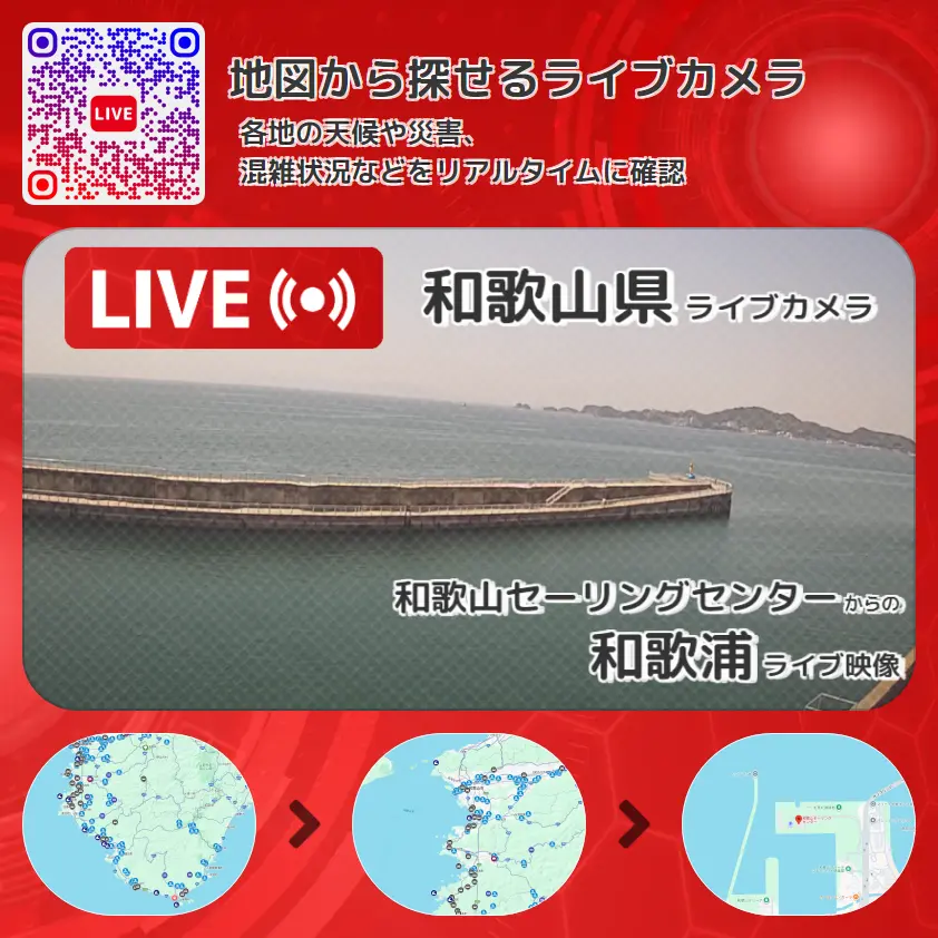 和歌浦の他に、和歌浦湾や周辺の気象状況も併せてチェックすることが可能で、台風・大雨・地震などの災害による被害状況も把握することができます。