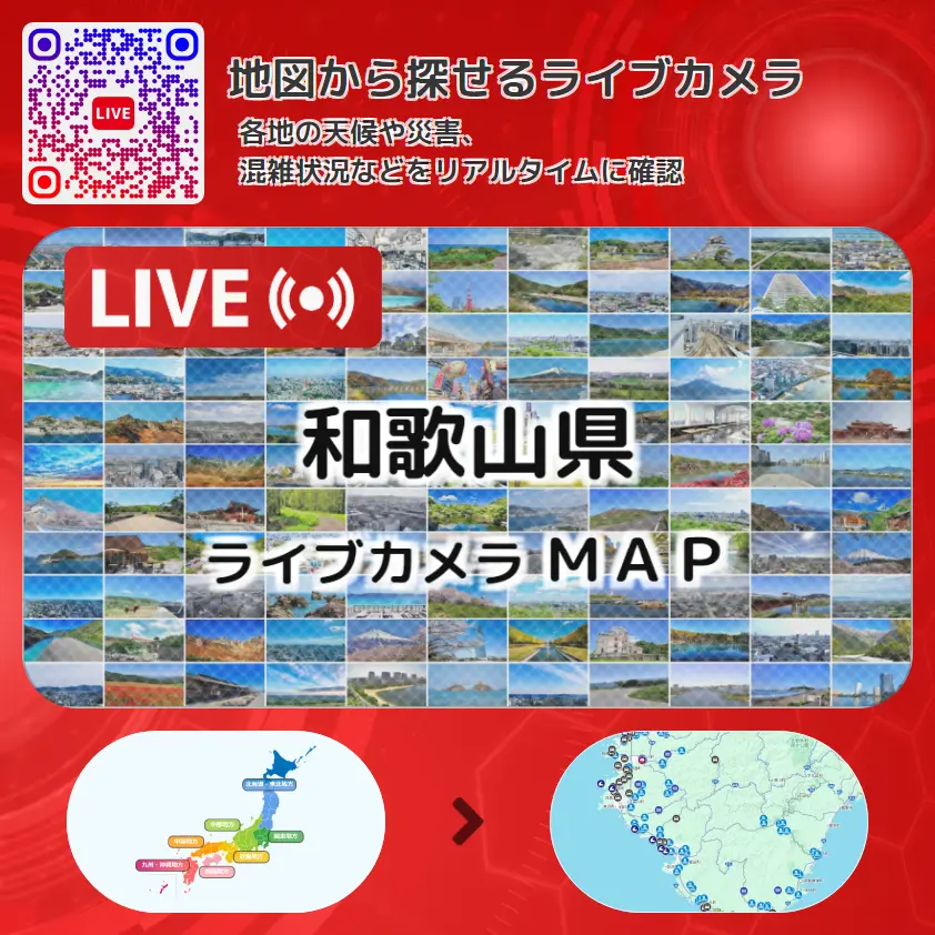 和歌山県のライブカメラMAP 和歌山県 X Facebook はてブ LINE コピー 2025.11.082025.11.09 リンク GoogleMapの地点一覧は測地系の影響により、地図上のマークが示す地点はおおよその場所になります。正確な位置は各地点の詳細ページをご確認ください。リンク