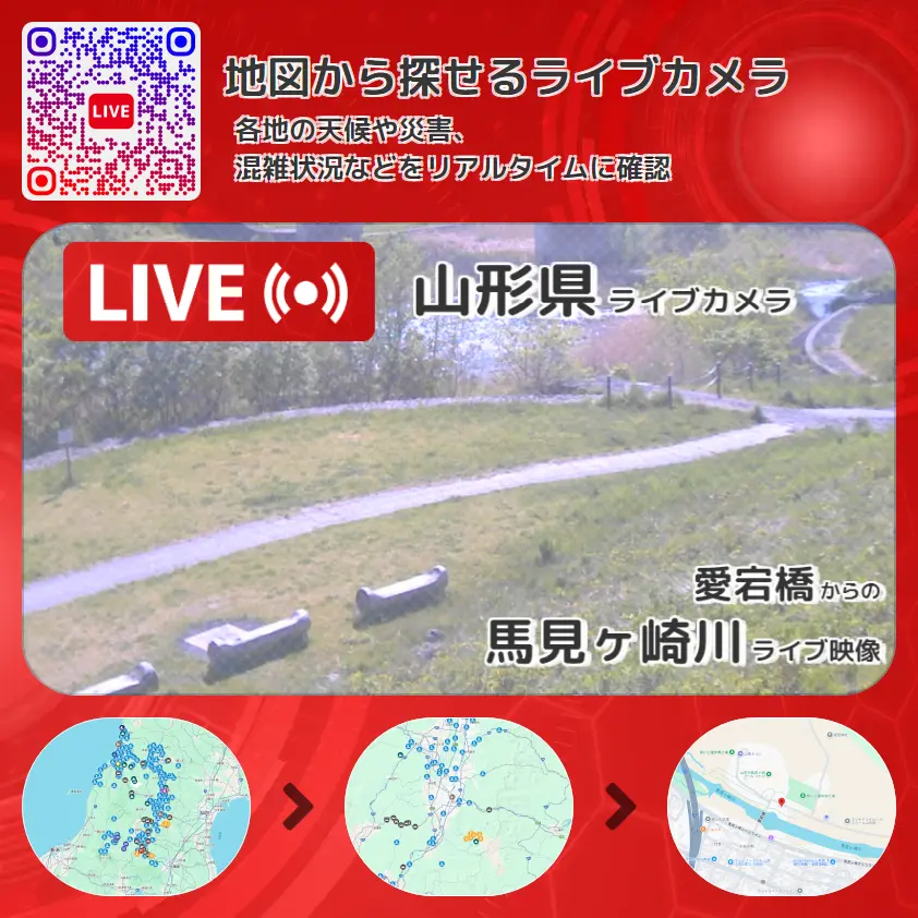 馬見ヶ崎川(馬見ケ崎川)の他に、愛宕橋や周辺の気象状況も併せてチェックすることが可能で、台風・大雨・地震などの災害による被害状況も把握することができます。