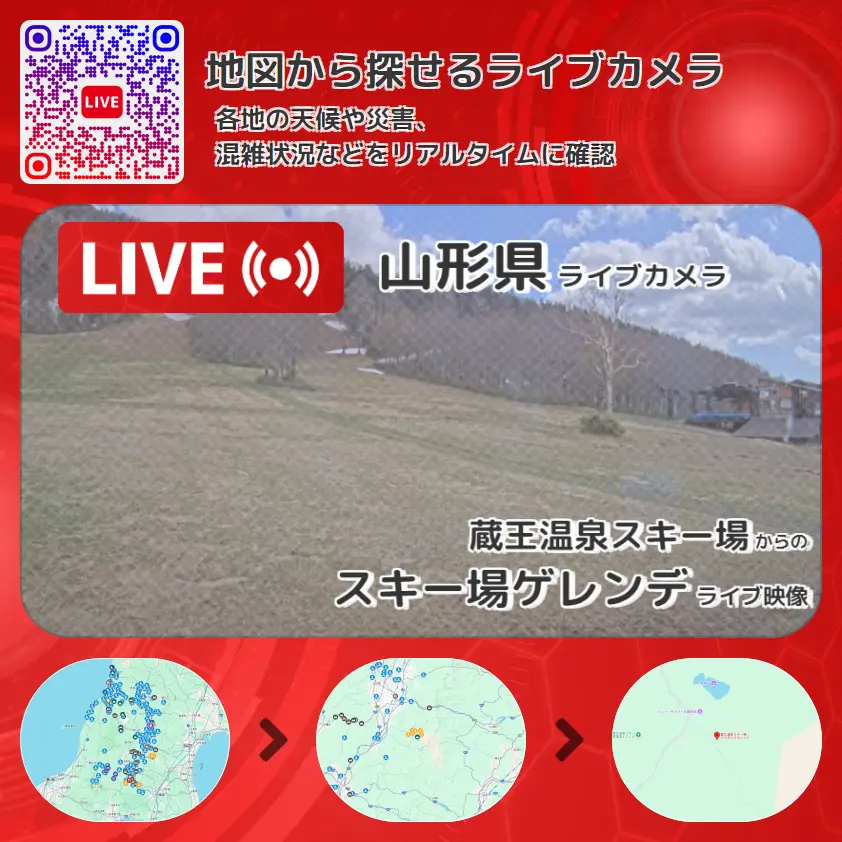 蔵王温泉スキー場から、スキー場ゲレンデ(パラダイスゲレンデ)が確認できるライブカメラです。