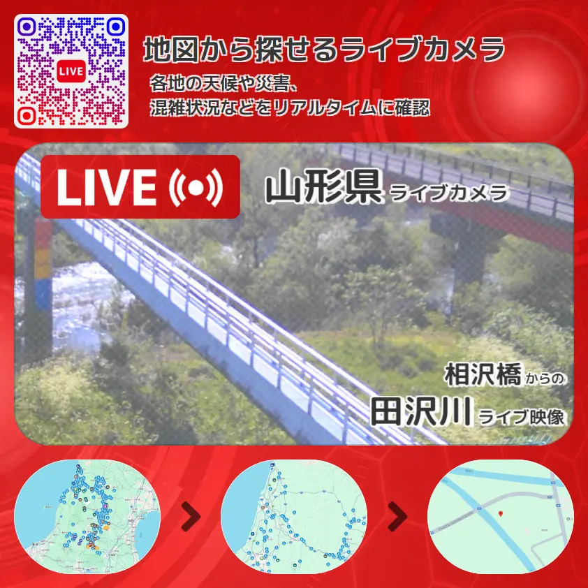 山形県 「田沢川」ライブ映像(相沢橋 設置カメラ) ライブカメラ 監視カメラ