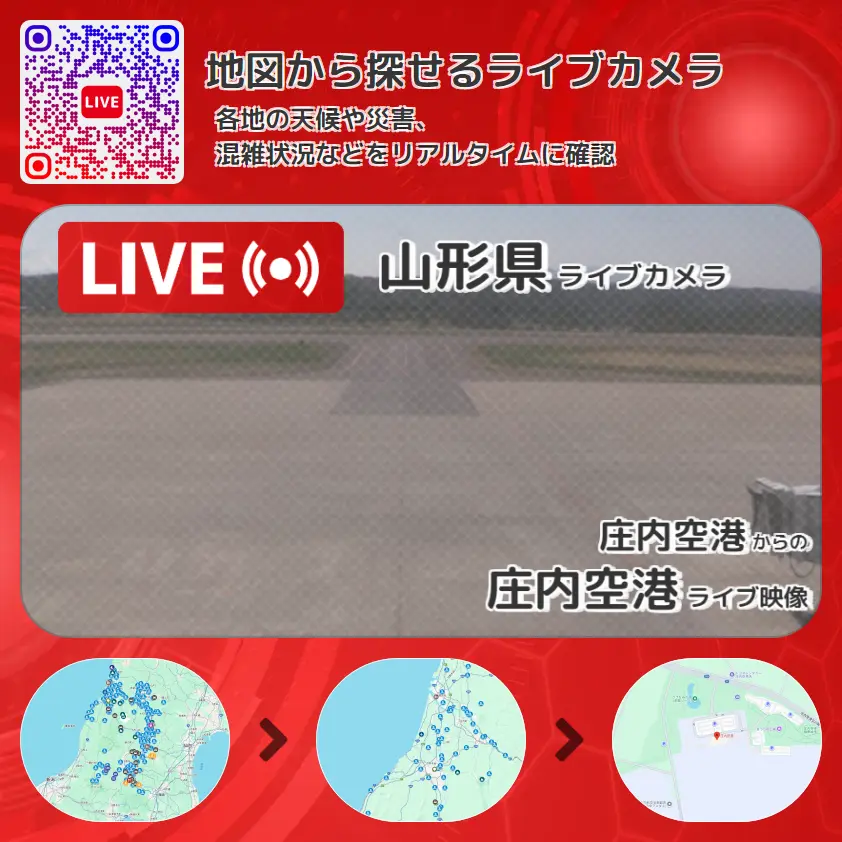 庄内空港から、庄内空港(滑走路・駐機場)が確認できるライブカメラです。