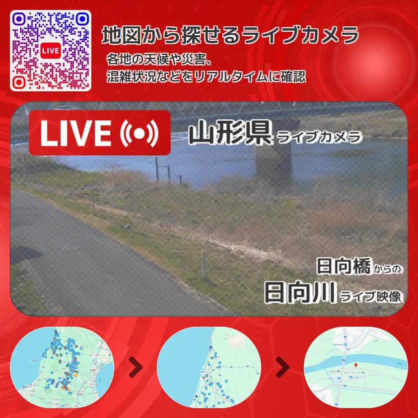 日向川の他に、日向橋や周辺の気象状況も併せてチェックすることが可能で、台風・大雨・地震などの災害による被害状況も把握することができます。