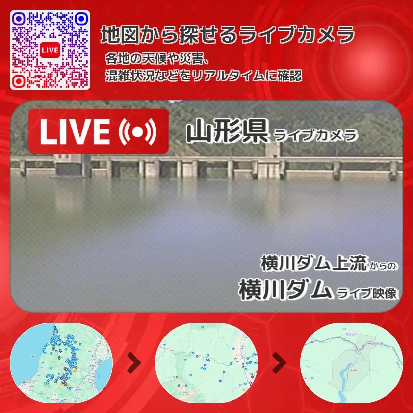 山形県 「横川ダム」ライブ映像(横川ダム上流 設置カメラ) ライブカメラ 監視カメラ