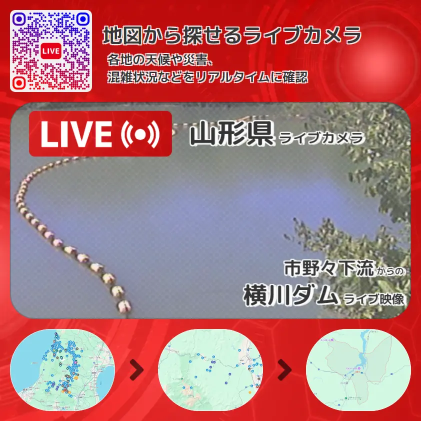山形県 「横川ダム」ライブ映像(市野々下流 設置カメラ) ライブカメラ 監視カメラ
