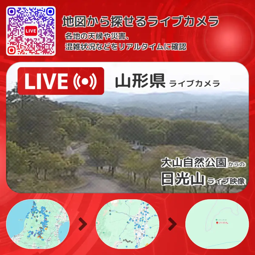 日光山の他に、大山方面や周辺の気象状況も併せてチェックすることが可能で、台風・大雨・地震などの災害による被害状況も把握することができます。