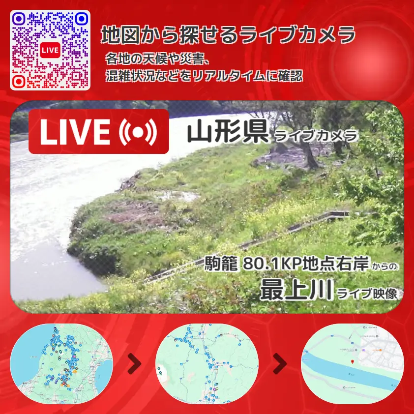 駒籠 80.1KP地点右岸から、最上川が確認できるライブカメラです。