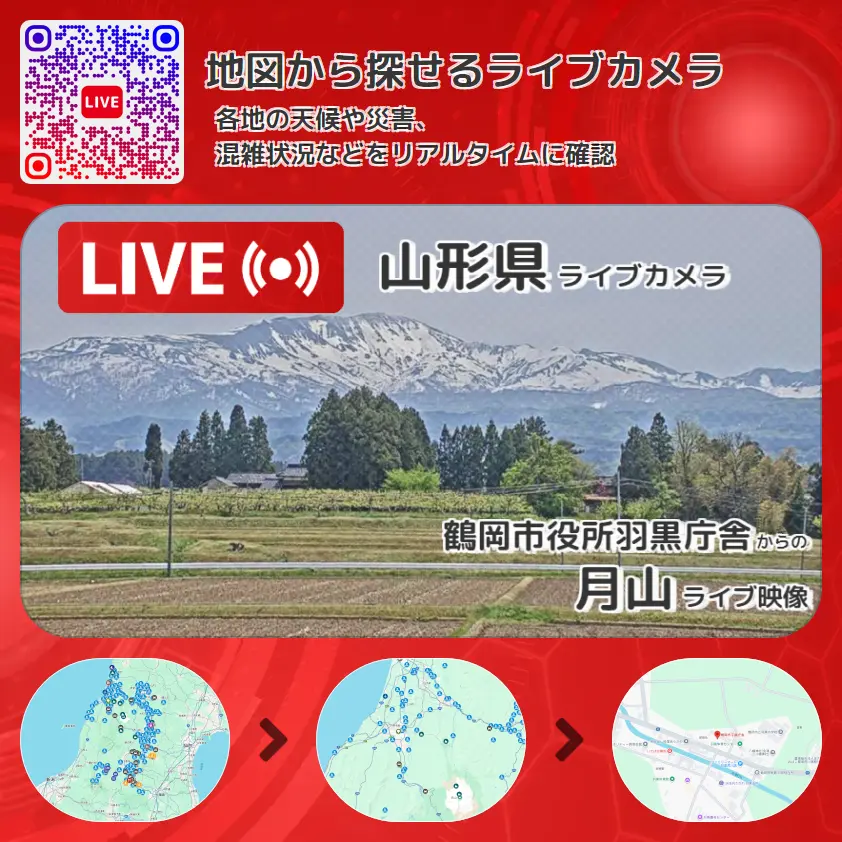 鶴岡市役所羽黒庁舎から、月山が確認できるライブカメラです。