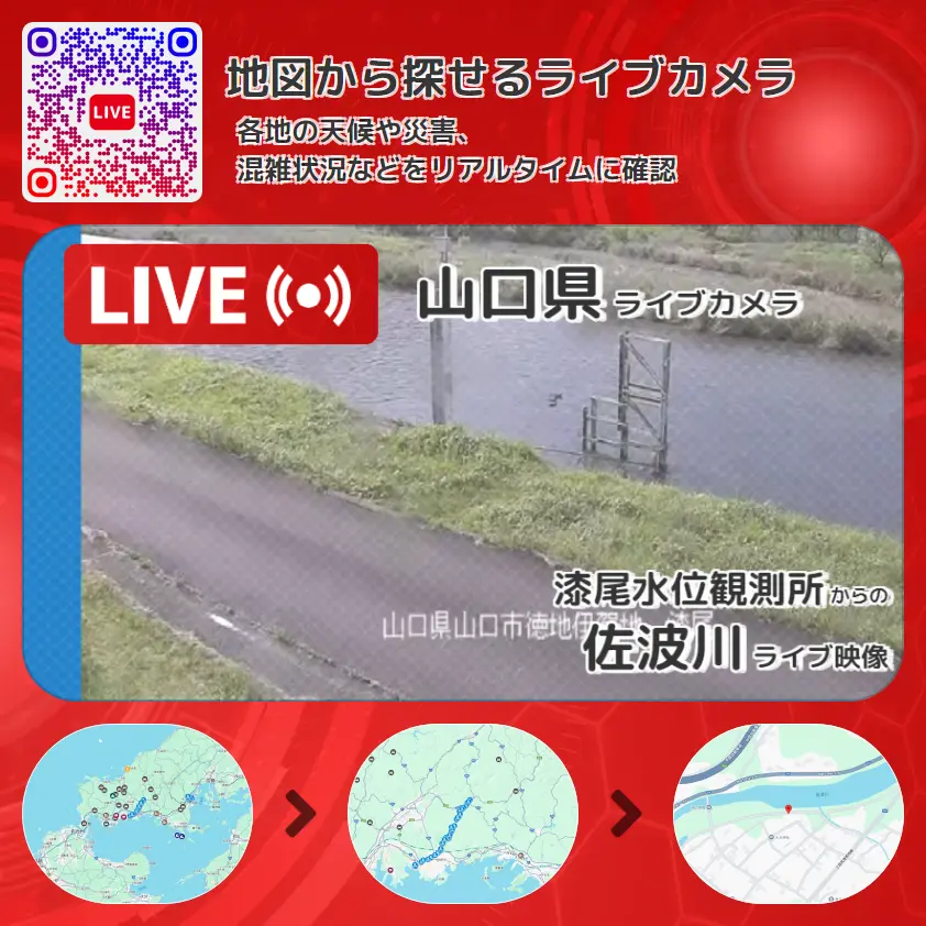 漆尾水位観測所から、佐波川(佐波川水系)が確認できるライブカメラです。